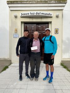 En imagenes el recorrido del Algarrobense Roth junto a su esposa y posteriormente la placa de agradecimiento al Santo de la Patagonia.