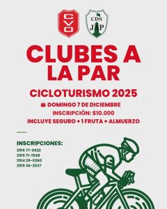 Sebastián Arbizu, integrante del Deportivo Social Juan A.Pradere, confirmó que la localidad se prepara para un gran evento recreativo junto al Club Social y Deportivo Villa Obrera,“Clubes a la Par 2025”, a realizarse el domingo 7 de diciembre Cicloturismo en bicicleta.