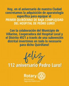 El Rotary Club local anunció la adquisición de equipamiento fundamental para poner en funcionamiento el primer quirófano de baja complejidad, una iniciativa concretada gracias al trabajo conjunto entre El Rotary , el Municipio de Villarino y la Cooperadora del Hospital.