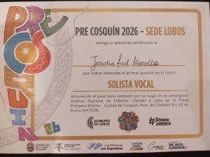 El músico y referente del folklore regional Yoni Mansilla, volvió a destacarse en el prestigioso Certamen Pre-cosquín, donde obtuvo una sobresaliente devolución del jurado y aseguró su lugar en la instancia final, que se realizará el 9 y 10 de enero en el emblemático escenario Atahualpa Yupanqui en Cosquín.