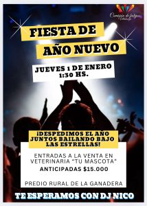 Las entradas anticipadas ya se encuentran a la venta en Villalonga, en Veterinaria “Tu Mascota”, de 19 a 20 horas. El valor anticipado es de 15.000 pesos, mientras que en puerta costará 20.000 pesos.