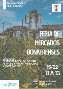 En adhesiónal 38 aniversario, el domingo 15 de febrero se realizará la Feria de Mercados Bonaerenses, de 8 a 13 horas.