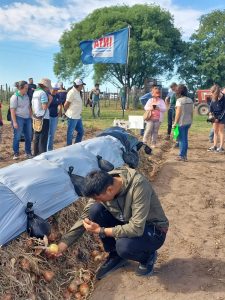 El martes 10 se desarrolló con gran éxito la jornada de campo en INTA Ascasubi. Se compartieron los resultados de la parcela demostrativa de cebolla, con siembra de precisión, riego por goteo con reservorio de agua y fertirriego sobre 5 materiales diferentes de cebolla con el mismo manejo tecnológico.