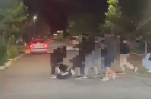 De acuerdo a las primeras observaciones, en las imágenes se advertiría una riña entre varias personas, en la que un masculino habría sido agredido por un grupo de individuos.